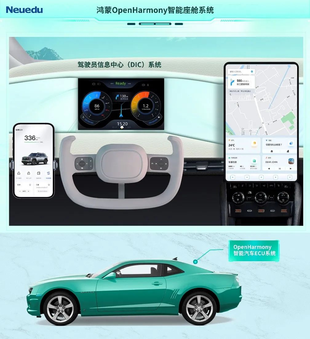 项目产品:鸿蒙智能座舱系统、OpenHarmony智能汽车ECU系统、驾驶员信息中心(DIC)系统、车联网后台管理系统4个综合项目