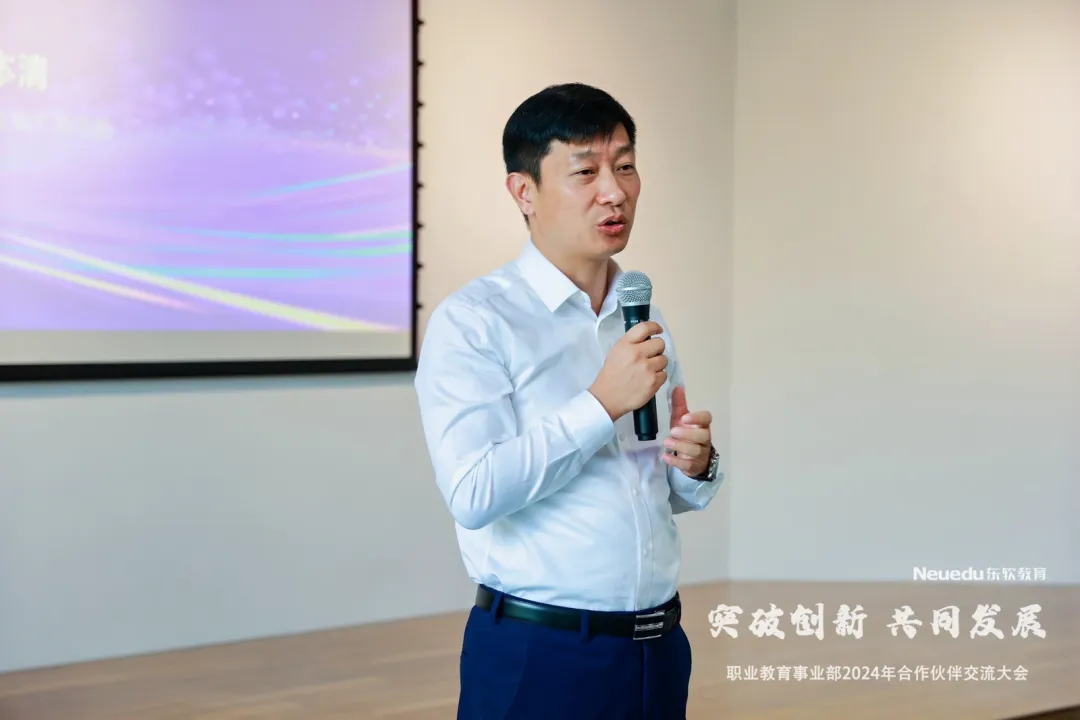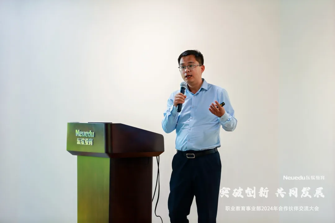 职业教育事业部副总经理孙扩作了以《与伙伴共生共长,赋能职教高质量开展》为主题的报告,全面系统地介绍了PA视讯国际教育的产业生态、开展规划、教学成果、内外资源与平台、产品和服务方案体系能力等。