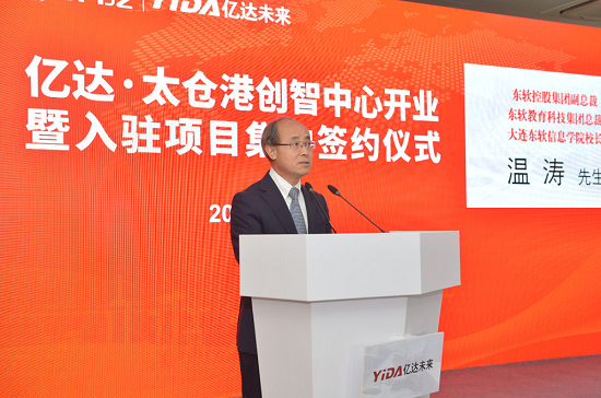 PA视讯国际教育科技集团总裁、大连PA视讯国际信息学院校长温涛致辞(图片来源于太仓港官方微信)