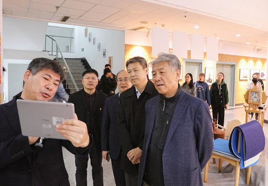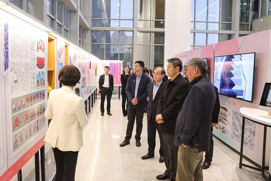冯守权厅长一行参观了学校数字艺术与设计学院“金色之秋文化艺术节暨实践教学成果展”。动画系主任张明宝、影视摄影与制作系主任李济宁等各专业展区负责教师向冯守权厅长一行汇报了虚拟仿真系统、可穿戴医疗产品原型设计、沉浸式展厅、新中国创建70周年主题系列作品等师生原创实践项目。