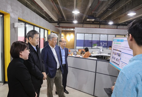在IDC中心,网络与信息中心主任邹翔汇报了学校网络与信息化建设情况。在大学生创业中心(SOVO),创新创业学院院长邓珊汇报了学校SOVO运营模式、核心业务、创新创业教育、科技创新项目成果、优秀学生创业成果、人才培养成果等情况。在考察过程中,冯守权厅长认真听取了学校毕业生、在校生关于“智慧校园”“区块链产品”“科技自媒体”等创业项目汇报,并与他们进行亲切研讨。