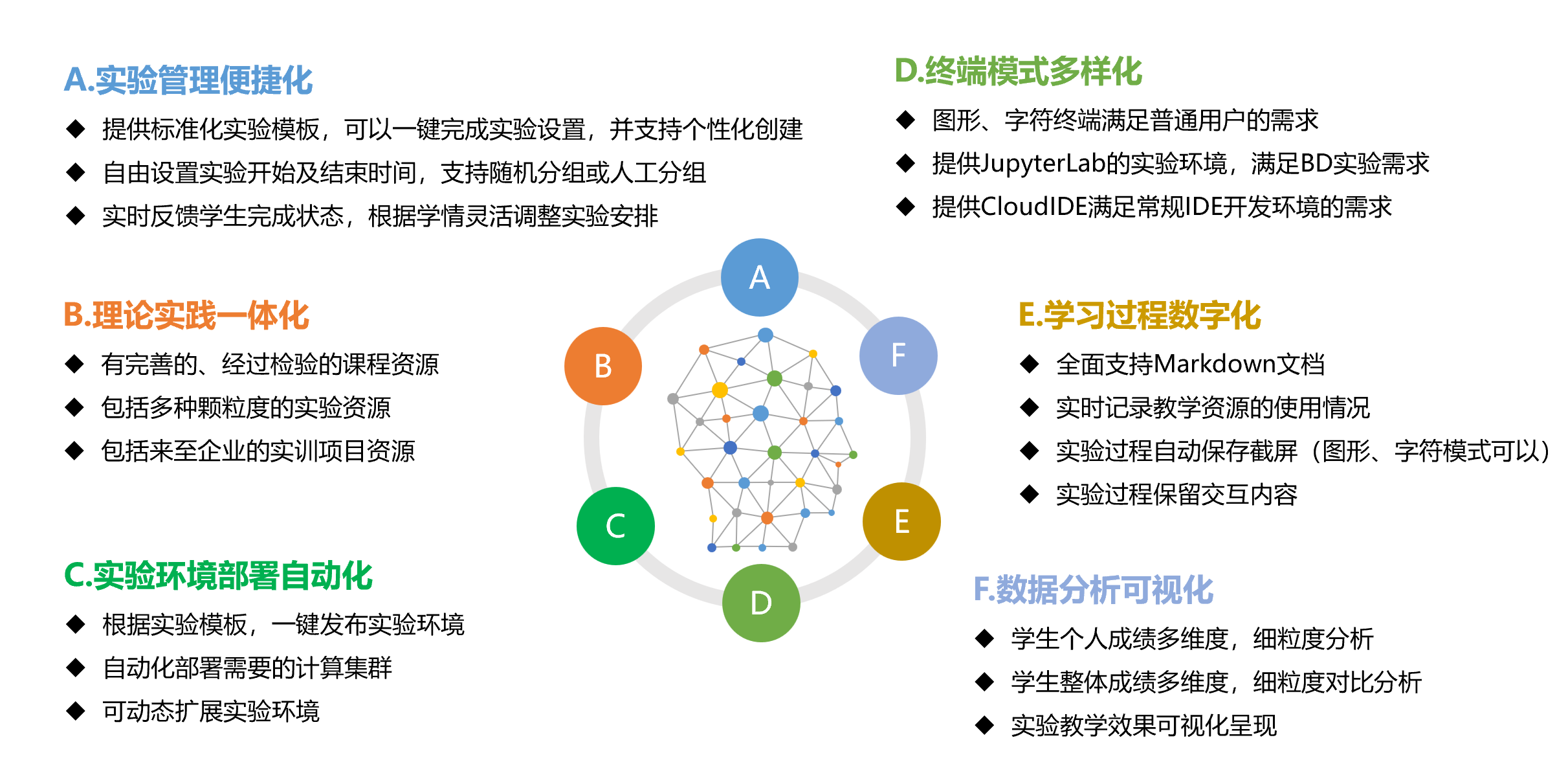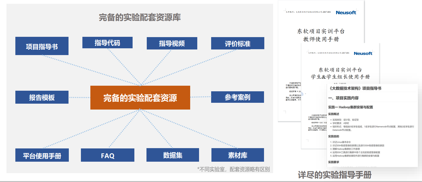 特色5:配套资源精细化。 完备的实验配套资源库、详尽的教师及学生平台使用手册,实操性强,方便高校快速落地实施。