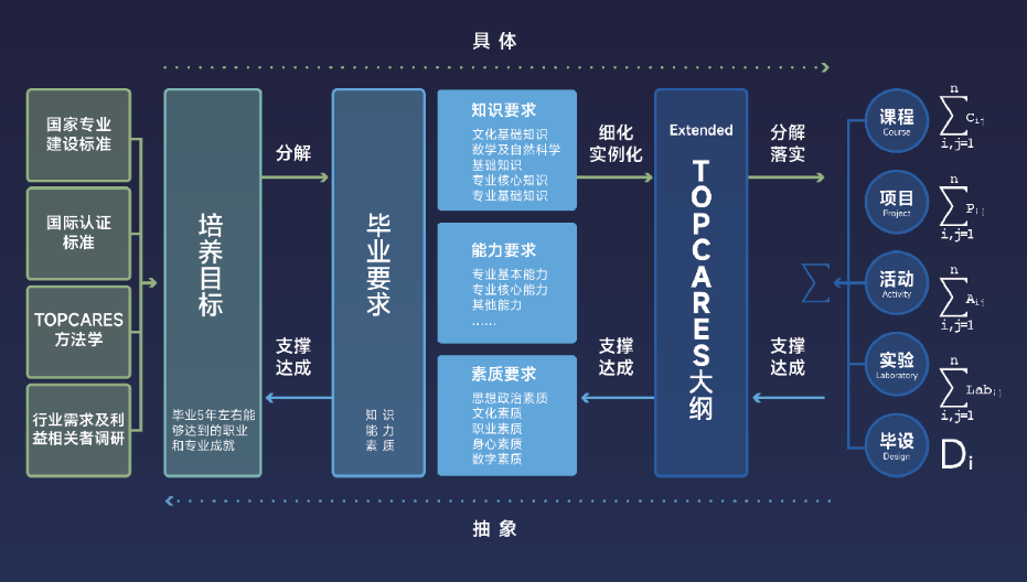 引入PA视讯国际智慧教育平台,平台集TOPCARES方法学、标准、资源、平台于一体,由智慧教育平台全面支撑匹配TOPCARES(成果导向)人才培养理念的各环节建设标准和教学资源。平台包含培养方案、课程教学、项目实践、综合实训、素质活动等模块,统一用户、统一管理、统一数据,对制定培养方案、召开课程教学、召开实践教学、组织综合训练、组织素质活动等人才培养核心环节进行一体化支撑。