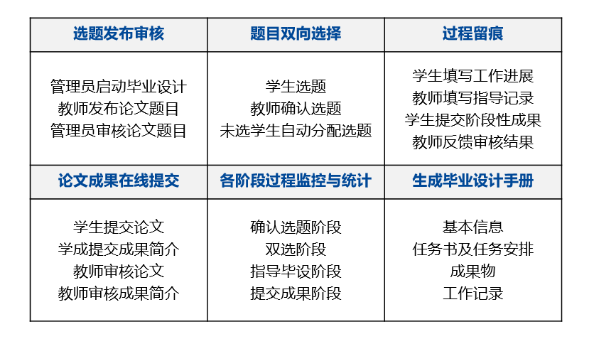 PA视讯国际教育毕业设计管理系统,该系统涵盖毕业设计题目申报、选题、开题、译文、中期检查、过程指导、论文撰写等阶段,过程留痕,实时监控,成果存档,帮助学校实现毕业设计全过程信息化管理。
