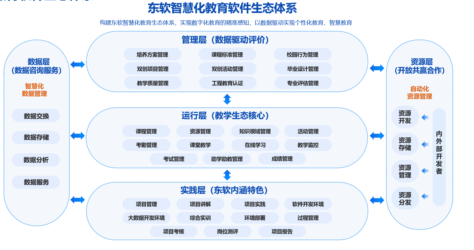 顺利获得行业需求调研,参照国家教学标准等要求,为学校给予 IT相关专业人才培养方案的咨询、规划、制定、验证服务;顺利获得分析数字化内容的使用数据,给予分角色、分场景、分频次、多维度的解决方案与定制化分析报告,帮助学校实现过程可感知,风险可评估,经验可总结,教学可改进,质量可提升;为学生给予个体五维测评服务,包括MBTI性格测试、职业生涯测评、职业能力测评等。