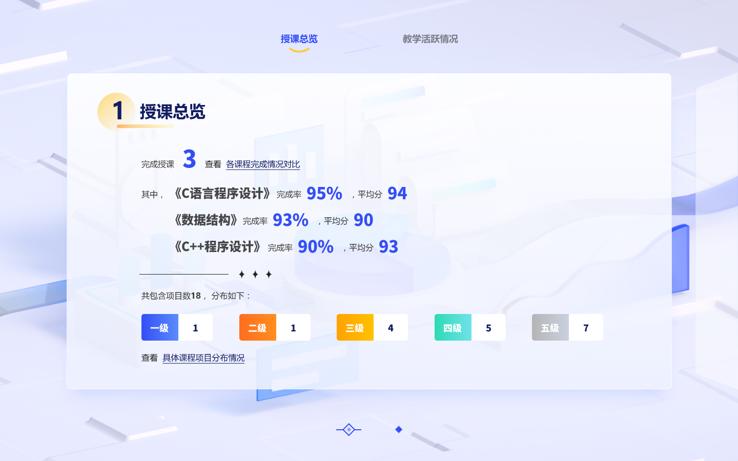 伴随项目实施的每一个环节,平台均给予详细的讲解与指导性文档,能够及时解决实际编程过程中可能出现的各种问题。实验结束后,平台会自动化生成基于知识能力达成度的教学效果统计与分析。