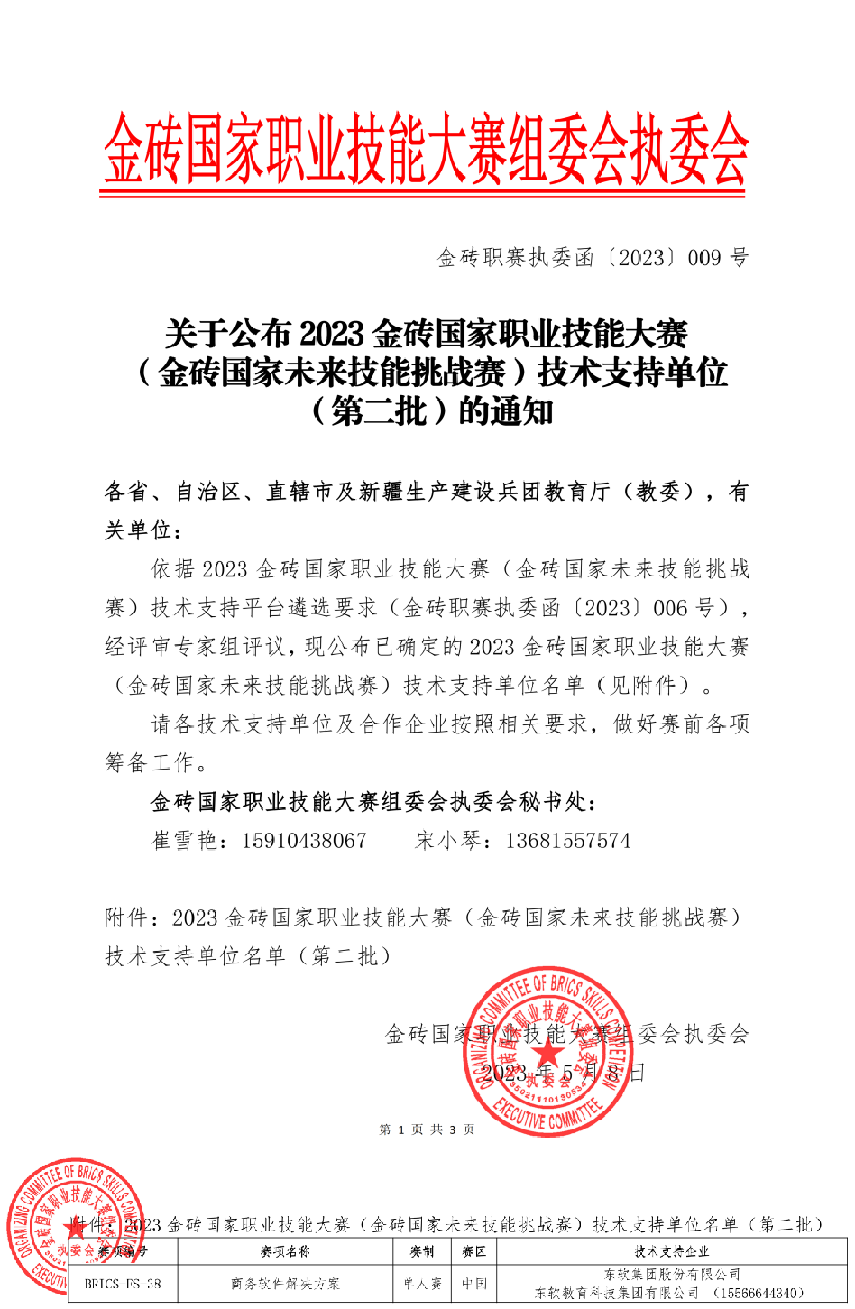 5月8日,金砖国家职业技能大赛组委会执委会发布了《关于公布2023金砖国家职业技能大赛(金砖国家未来技能挑战赛)技术支持单位(第二批)的通知》,PA视讯国际教育科技集团成为商务软件解决方案赛项(编号:BRICS-FS-38)的技术支持单位。